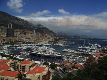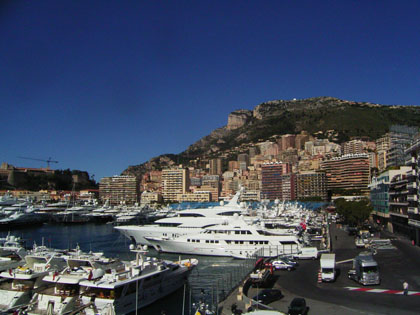 整個摩納哥公國,其實就是一個港灣城市,據說歐美各國的富豪都來此置產,金屋藏嬌,而有了房子後,也就境隨俗,購置豪華遊艇相伴,港口內泊滿著各式各樣的遊艇,相互競艷,似乎也是富豪們暗中比較身分地位高下的方式;此時正值夏天,氣候十分宜人,即使在烈日曝曬下,也不會有汗濕衣襟的燥熱,但據旅遊資訊提到,冬季一到,由於此地位居海岸,氣候十分寒冷不適合居住,多數居民尤其是歐美的富豪,也都避居他地去了,因此這個國家是夏天才比較有人煙,也比較熱鬧的。