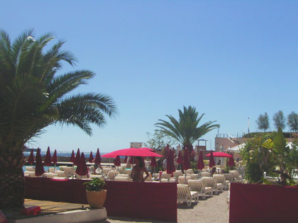 早上來到蒙地卡羅市區,道路上到處是輪胎摩擦過的痕跡:錯綜複雜像蜘蛛網般,柏油應該要重漆了,可以想見昨日的F1 賽事的激烈程度,而路旁是一座座階梯狀、尚未拆除的觀眾台,已有工作人員在動工拆除了,我和旅伴於是就趕緊跑上其中一個觀眾台,居高臨下,蒙地卡羅海港的景色頓時盡收眼底,當天早上氣候宜人,陽光也不刺眼,迎面的是和煦微風,放眼望去那種海天一色、遼闊無際的景象:工整潔白的高樓群沿著海岸和山坡群聚著、岸邊泊著成百上千艘的遊艇和郵輪,無數的桅杆高低不一,爭著直指天際;濱海人行道,及其上錯落有緻的大遮陽傘、川流不息的遊客,也從無盡的遠方綿延而來;不時可看到數隻海鷗在湛藍的天際翱翔,成了此情此景的最佳點綴,看著看著,連心情也開闊了起來,甚至有些感動,我想除了在電影中,想必很難在實際生活裡看到這樣的景象了,而在狂按相機、狂殺底片的同時,不禁懷疑照片能表達出幾分這樣的景象、又能捕捉幾分當時的感動呢?
